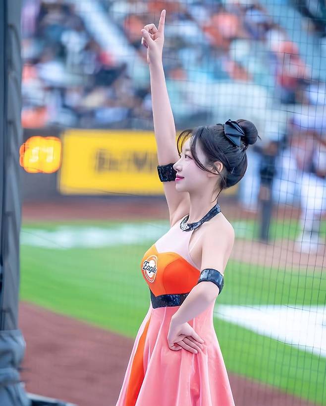 발랄함과 스포티함의 정점을 찍은 한화이글스 치어리더 우수한의 응원 패션이 팬들의 시선을 단숨에 사로잡았다.