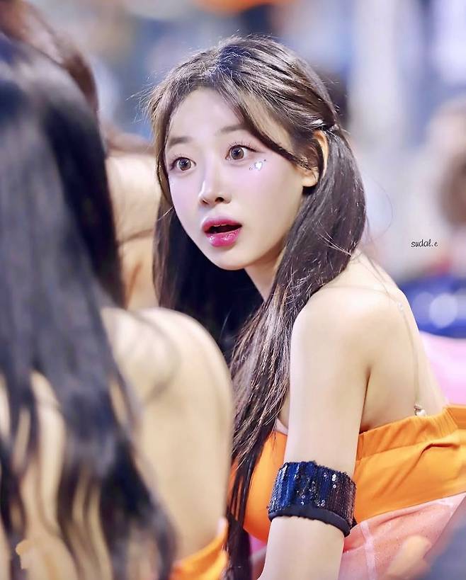 #우수한 #우수한패션 #우수한치어리더룩 #한화이글스 #치어리더패션 #응원룩 #야구장패션 #오렌지드레스 #플레어스커트 #러블리룩 #여름코디 #스타패션