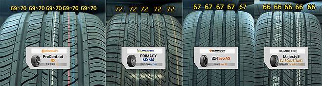 비교 대상 타이어 4종