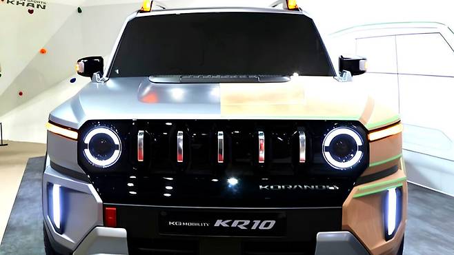 KG 모빌리티의 KR10은 각진 차체 디자인을 통해 정통 오프로더의 감성을 강조하고 있으며, 가솔린부터 전기차까지 다양한 모델을 앞세워 올 하반기 출시를 준비 중이다.