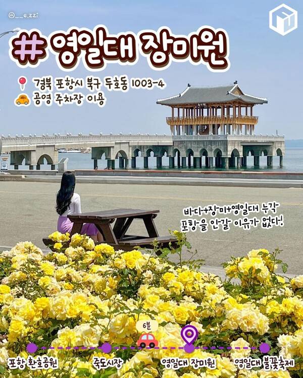 시원하고 낭만적인 포항은 요즘같은 봄철 주말 1박 2일 여행을 떠나기 제격인 여행지입니다. 특히 5월 말부터 6월까지 포항은 해풍을 맞으며 5월 만개한 장미와 5월 31일부터 6월 2일까지 열리는 대규모 포항국제불꽃놀이까지 볼거리가 넘쳐나는데요.