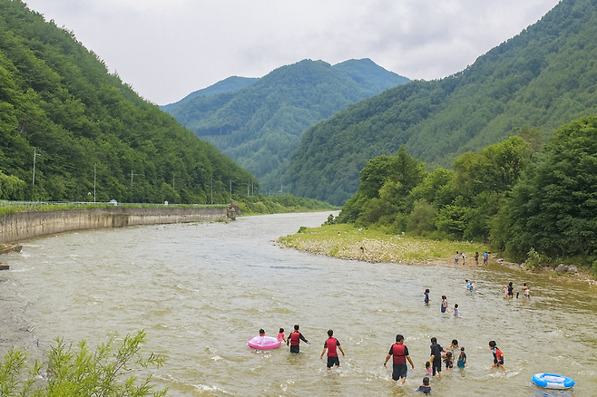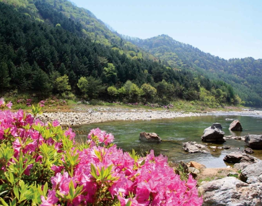맑고 깊은 계류가 길게 이어지며 모래와 조약돌이 깔려 있어 아이들과 함께하는 가족 피서지로 제격입니다.쏘가리, 꺽지, 메기, 다슬기 등 민물 생태가 풍부해 물놀이와 동시에 자연 체험을 즐길 수 있습니다.봄철에는 계곡을 따라 철쭉이 만발해 환상적인 풍경을 선사합니다.