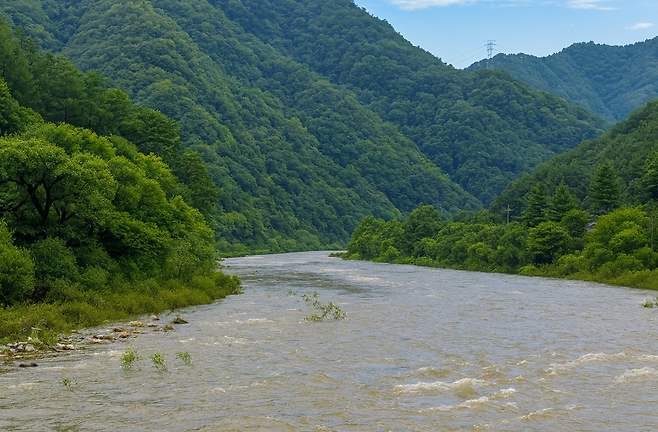 푸른 숲과 깎아지른 듯한 절벽, 그리고 S자로 굽이도는 강줄기가 어우러진 청정계곡.