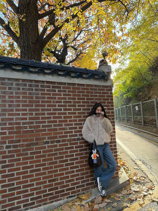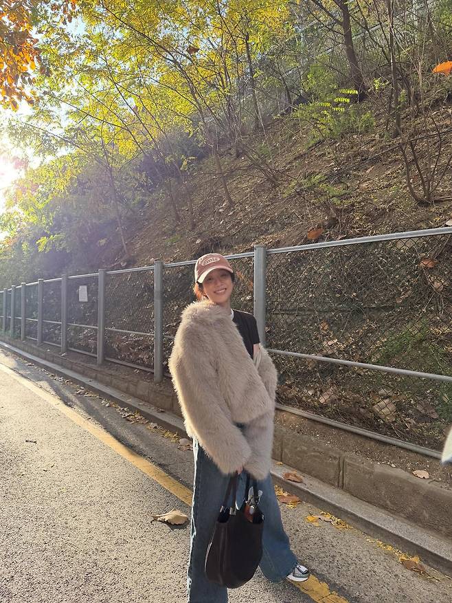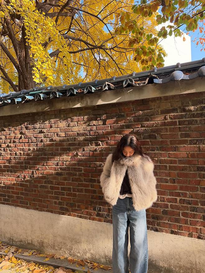 풍성한 텍스처가 자연광과 만나면서 은은하게 빛나, 가을 햇살과 완벽하게 어우러진 스타일이 돋보였어요.