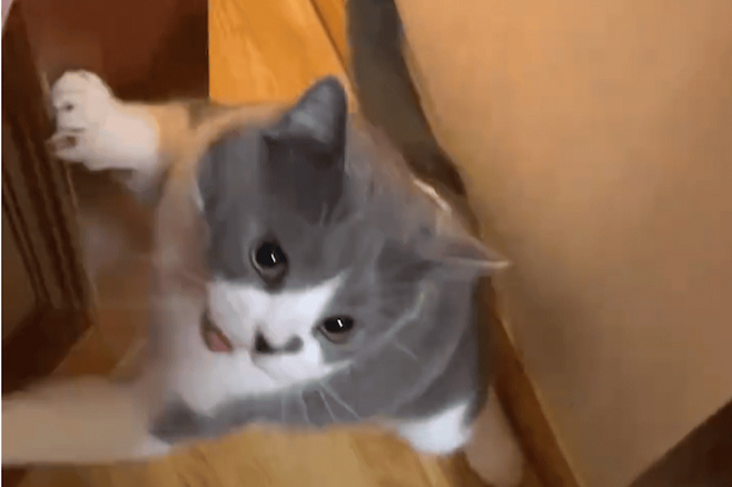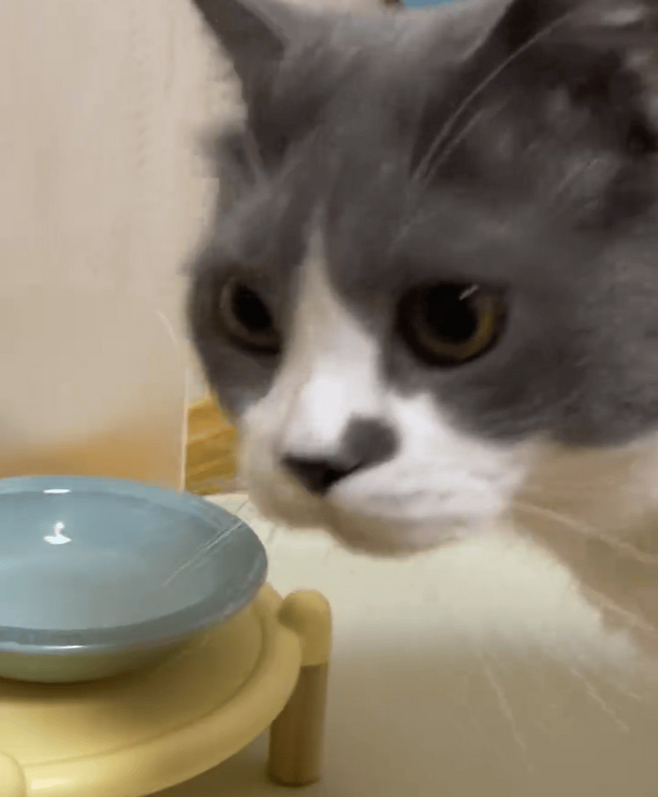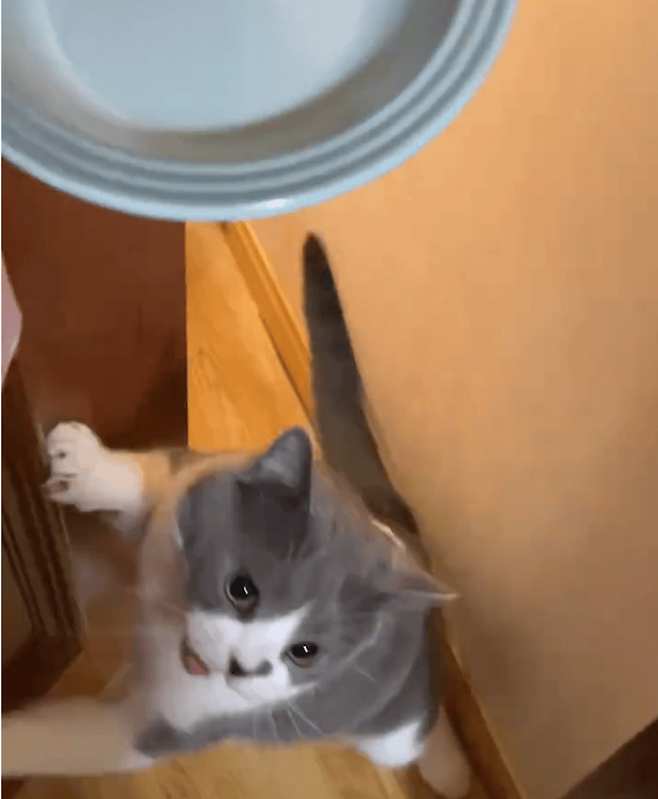 주인이 밥그릇을 바닥에 내려놓자, 고양이는 기대에 부풀어 다가갔습니다. 하지만 밥그릇 안이 완전히 비어 있는 걸 확인한 고양이는 잠시 망설였습니다. 이내 작은 탐정처럼 고개를 이리저리 돌리며 주변을 꼼꼼히 살폈습니다.