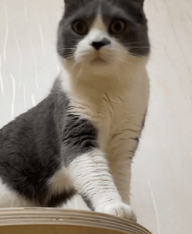 고양이는 포기하지 않고 천천히 캣타워로 올라갔습니다. 높은 곳에 서서 사방을 두리번거리는 모습에는 의심과 확신이 뒤섞여 있었습니다. 고양이는 밥그릇이 비어 있다는 사실을 조금도 받아들이지 않는 듯했습니다.