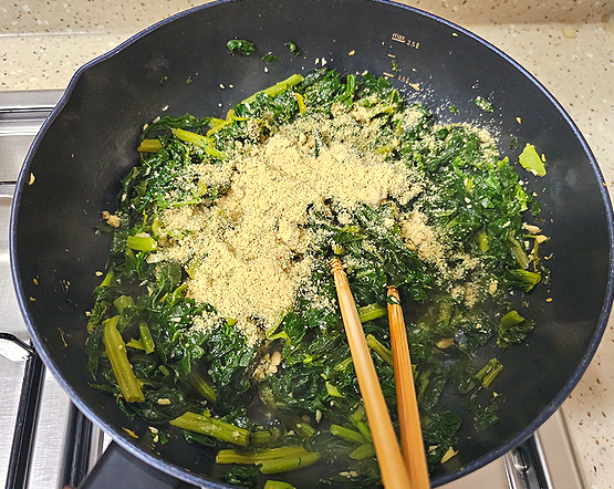 ✔️ 고소하게 마무리들깨가루를 듬뿍 넣고 한 번 더 볶아 마무리!