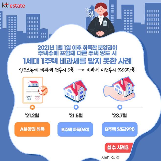 강대한 씨는 2021년 2월 A분양권을 취득한 후 2021년 5월 서울 동작구 소재 B주택을 6억원에 취득하고 2023년 7월 9억원에 양도했습니다. B주택 양도 시 다른 주택이 없어 1세대 1주택자로 비과세 신고했지만, A분양권이 주택 수에 포함돼 B주택에 대한 비과세를 받지 못했습니다.
