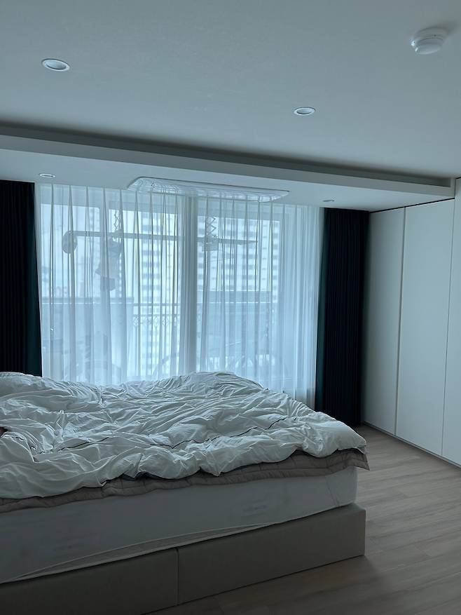 침대는 킹코일이라는 브랜드에서 라지 킹으로 골랐어요. 더 큰 사이즈로 하려고 했는데 매장에서 방이 좁아 보일 수 있다고 했는데, 집에 설치해 보니 자리가 남아서 더 큰 것으로 하길 후회하고 있어요.