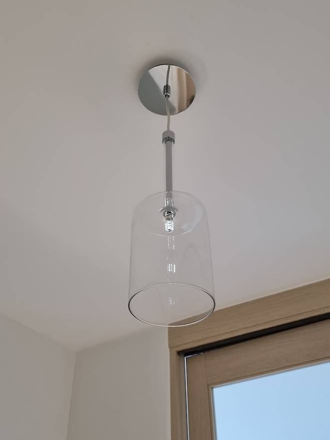 이 조명은 제가 리모델링 전 우연히 까사인루체 매장을 방문하고, 나중에 집을 고친다면 이 조명을 꼭 써야지 하고 마음속에 찜해두었던 조명이에요. 신발장에 달기엔 어둡지만 그래도 그 투명함이 예뻐서 만족하고 있어요.