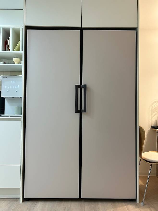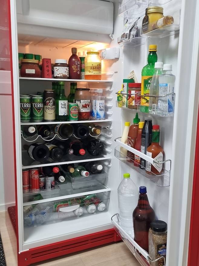 술장고가 따로 있기 때문에 주방에 있는 냉장고를 더 넓게 쓸 수 있었던 것 같아요. 그런데 저는 이 방을 운동하러 들어가는 것보다 술 꺼내러 더 자주 가는 것 같네요. ㅎㅎ