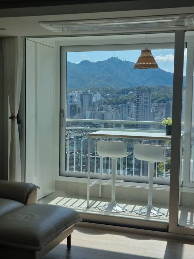 그리고 매일 거실 앞에 펼쳐진 산뷰를 보면서 이 집을 선택하길 잘했다고 생각하고 있어요. 이 집에 산 뒤로부터 외식 횟수가 줄었고 서울 근교 대형카페도 안 가게 되었어요. 베란다만 나가면 바로 저희 집이 명당 자리거든요.