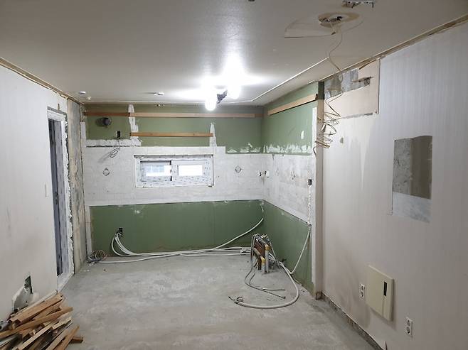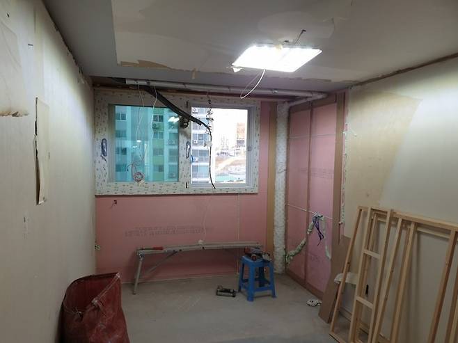 이 방은 베란다가 있었지만 이전에 사시던 분이 베란다를 확장했었어요. 옛날에 공사한 것이라 곰팡이나 단열에 문제가 있어서 제대로 다시 공사해야 했어요.
