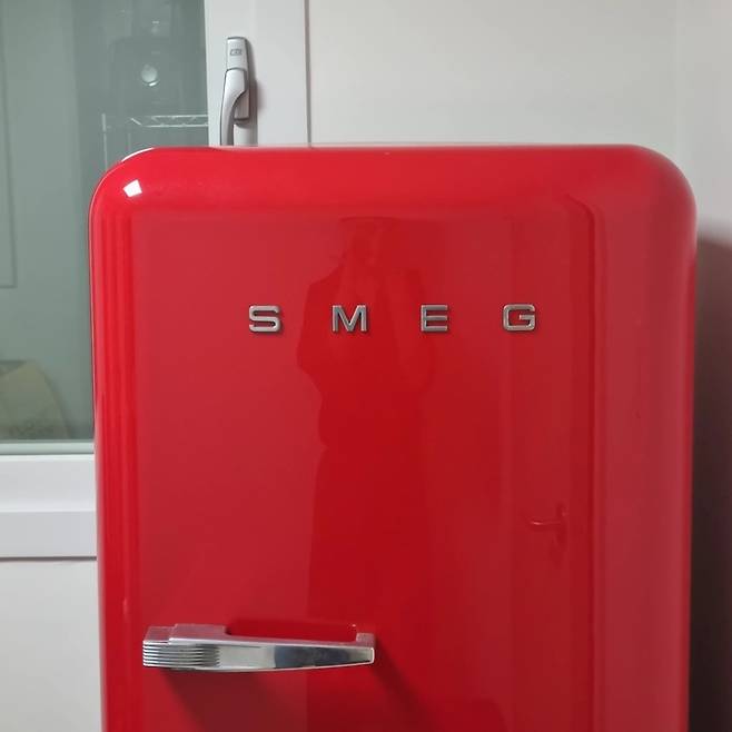 헬스방의 비밀.. 또 다른 냉장고가 있습니다. 이 냉장고는 제가 자취할 때부터 썼던 냉장고인데 주방에 놓을 자리가 없어서 헬스방으로 오게 되었어요. 예쁜 스메그 냉장고인데 처분하기엔 아깝더라고요.