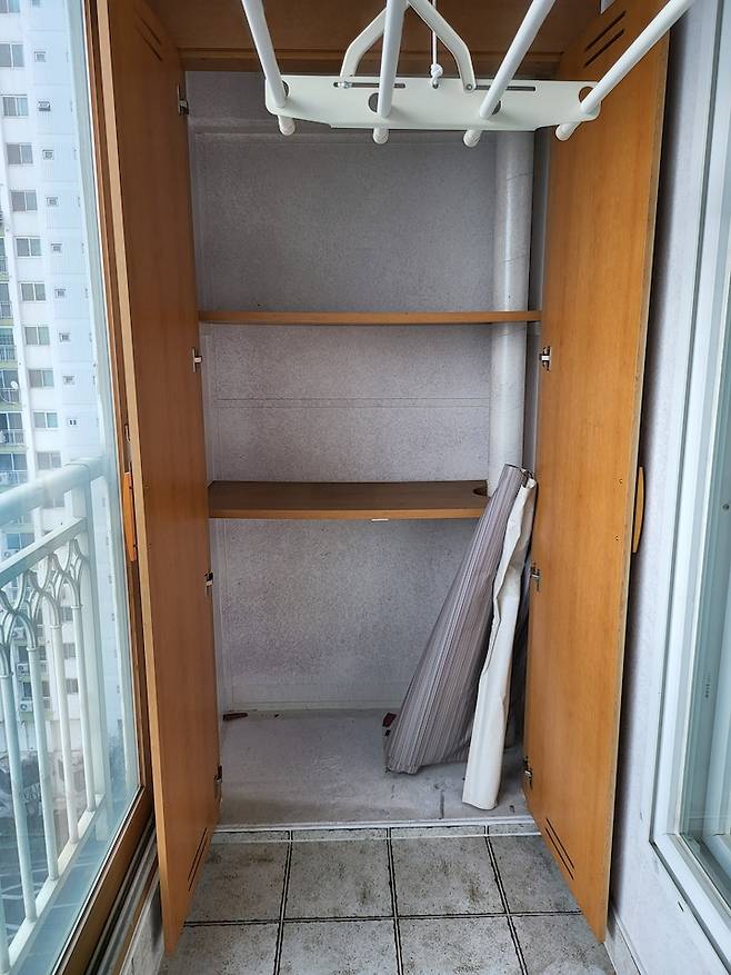 그리고 저는 베란다에서 화분도 키우고 싶었기 때문에 베란다는 확장하지 않고 양쪽에 베란다 팬트리를 만들었어요. 기존에 베란다 팬트리가 있었지만 오래되어서 휘어 있는 상태였어요.