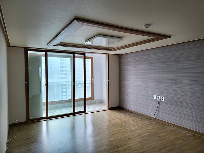 체리 몰딩에 포인트 벽지가 있었던 거실 비포 모습입니다. 거실도 모두 '뼈대'만 남겨두고 샷시(새시)까지 바꿨어요. 비용 문제 때문에 샷시(새시)는 교체 안 하려고 했지만 샷시(새시)가 단열에 가장 중요하다고 해서 비용이 크게 들어갔지만 모두 바꾸었습니다.
