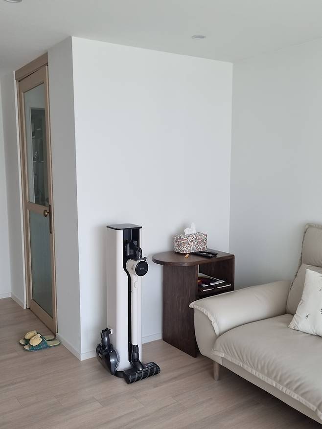 공사하기 전에 수납이 하나 더 증가하니까 공간이 답답해 보이지 않을까 했는데 거실이 넓어서 그런지 전혀 답답하지 않고 오히려 가벽처럼 공간을 분리해 주는 느낌이 들어요.