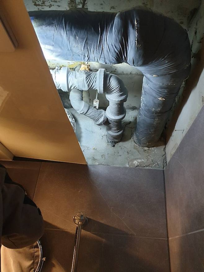 샷시(새시)도 바꾸고 단열도 튼튼하게 했어요. 배수관이 지나가는데 물소리가 날 수 있기 때문에 소음 흡수재로 감았습니다.