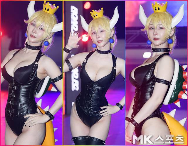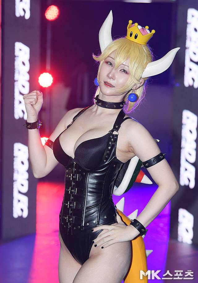 코스프레 한국 챔피언 마이부가 경기 전 포즈를 취하며 매력을 뽐내고 있다. 마이부는 이날 경기 중 라운드를 알리는 로드걸로 활동할 예정이다.