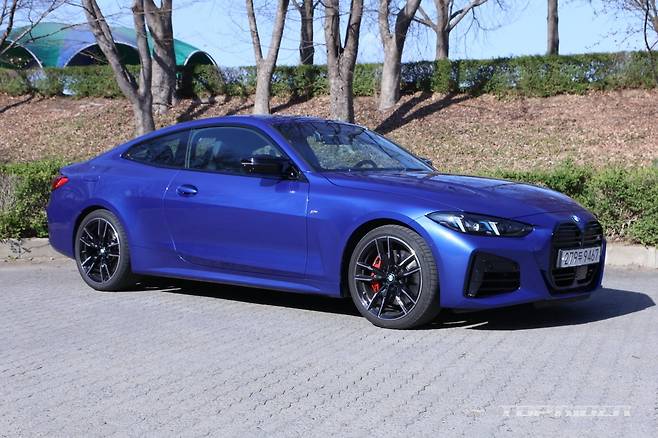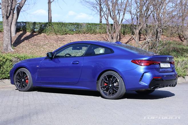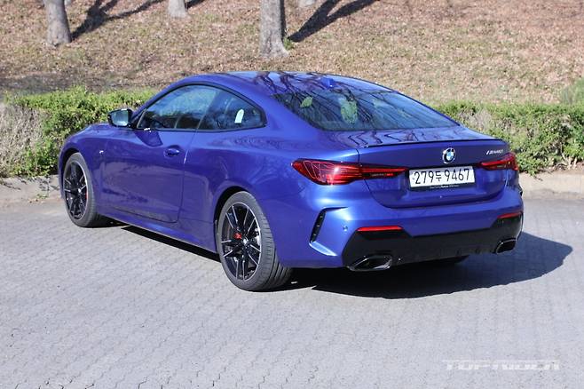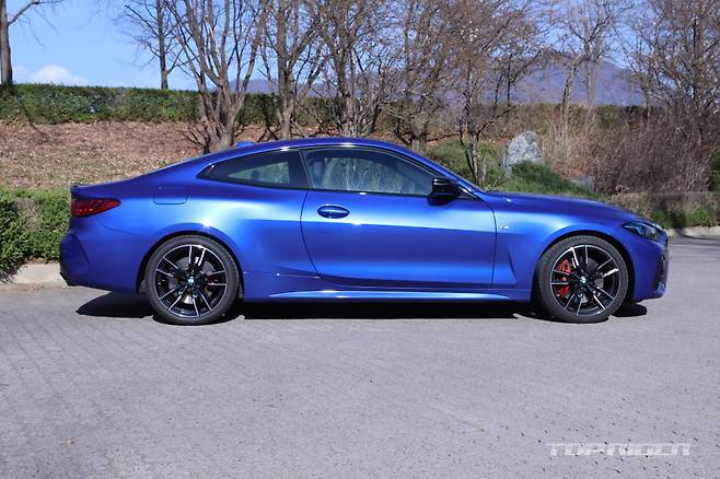신형 M440i xDrive 쿠페는 M4를 제외한 4시리즈 최상위 라인업인데, 레이저 라이트가 빠진 것은 의외다. 측면부는 매끄럽게 떨어지는 루프라인으로 스포티한 실루에싱 구현됐으며, 탄소섬유 강화 플라스틱으로 제작된 M 사이드미러, 19인치 휠이 배치됐다.