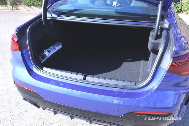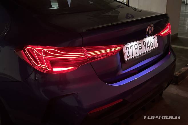 타이어 사이즈는 전륜이 225/40, 후륜이 255/35다. 후면부는 신형 4시리즈의 핵심으로 레이저 테일램프가 탑재됐다. 레이저 테일램프는 선명한 곡선으로 존재감이 상당하다. 신형 M440i xDrive 쿠페는 M 리어 스포일러까지 추가됐다. 전동 트렁크가 기본이다.