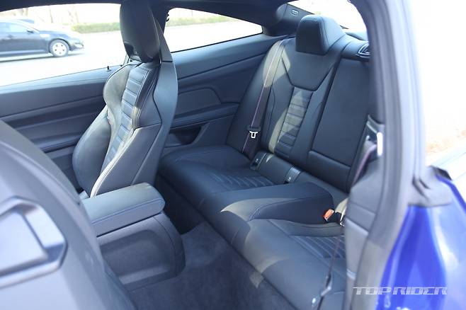 스포츠 시트 착좌감과 측면 지지력은 만족스러운데, 소재가 거친 느낌이다. 2열은 헤드룸 공간이 적어 180cm 성인이 정상적인 자세로 앉는 것이 불가능하다. 개인적으로는 콤팩트하게 변경된 전자식 기어레버와 2열 창문이 열리지 않는 점은 불만이다.