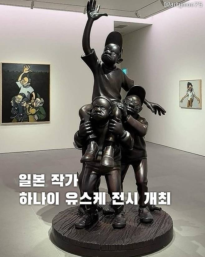 갤러리 내부에 설치되는 2.7m의 대형 청동 조형물 ‘무제(2024)’는 다같이 힘을 합쳐 올라가는 연대와 단합의 중요성을 표현한 작품으로 국내에서는 처음 선보이는 작품이다. 이번 전시에서 등장하는 하나이 유스케의 작품 속 무심한 표정의 캐릭터를 30cm 가량의 피규어에 담아 굿즈와 함께 분더샵 1층에서 선보일 예정이다.