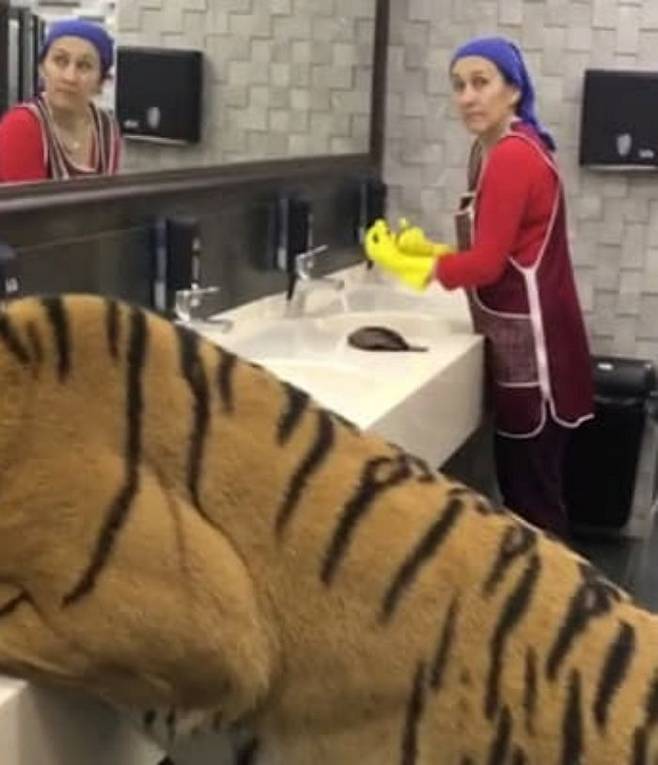 그래도 처음에는 호랑이를 보고 많이 놀랐는데