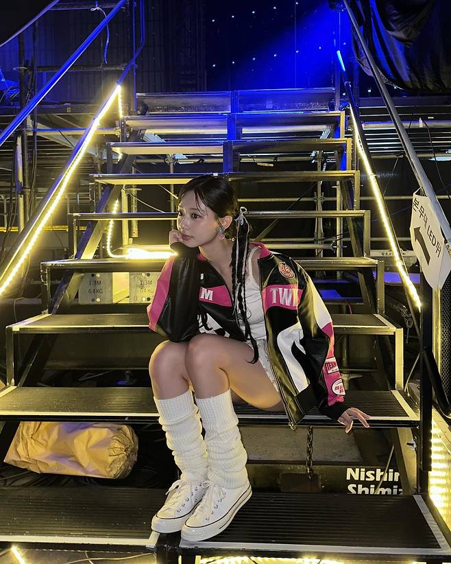 인스타그램에 공개된 다른 사진에서는 트와이스라는 글씨가 적힌 스포티한 가죽 자켓에 흰색의 민소매와 치마를 매치해 발랄하고 상큼한 분위기를 연출했습니다. 이러한 다채로운 의상 선택으로 그녀는 패션 아이콘으로서의 면모를 과시하며 팬들과 소통하고 있습니다.
