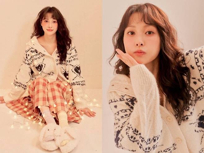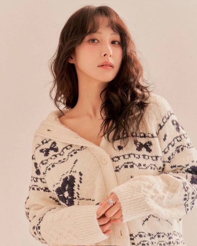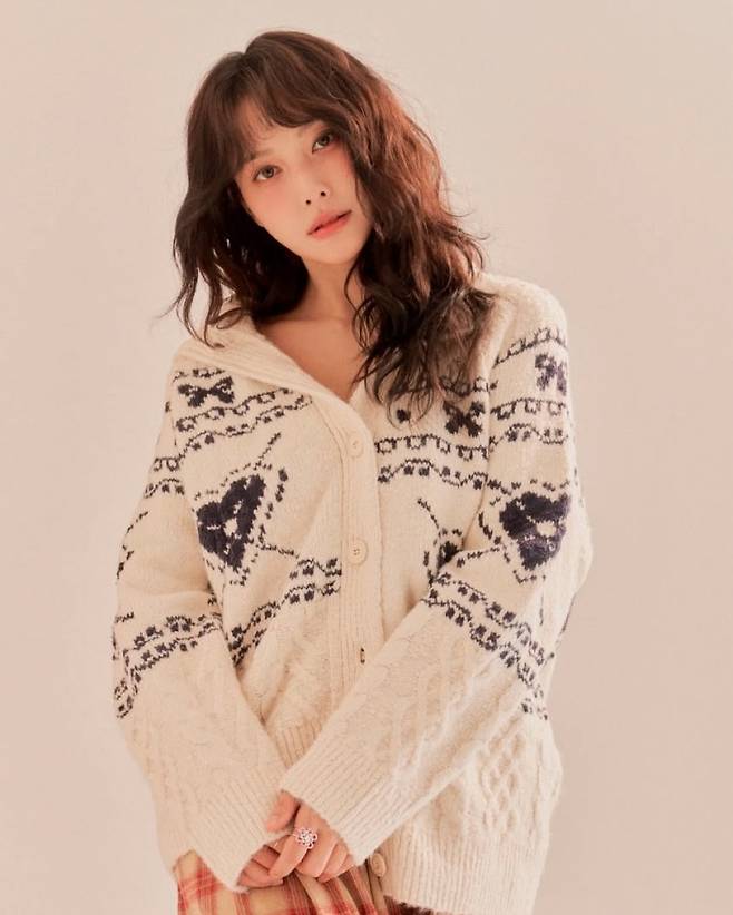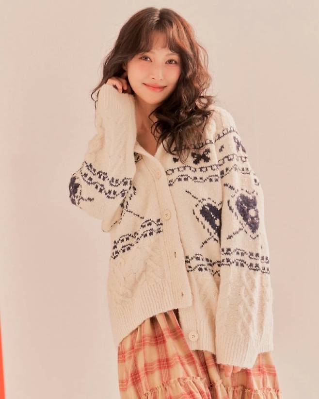 사진 속 박규리는 체크무늬 치마에 포근한 니트 카디건을 걸치고 사랑스러운 룩을 선보이고 있다. 웨이브 헤어와 볼터치가 강조된 메이크업, 따뜻한 색감의 조명이 사랑스러움을 더하고 있다.