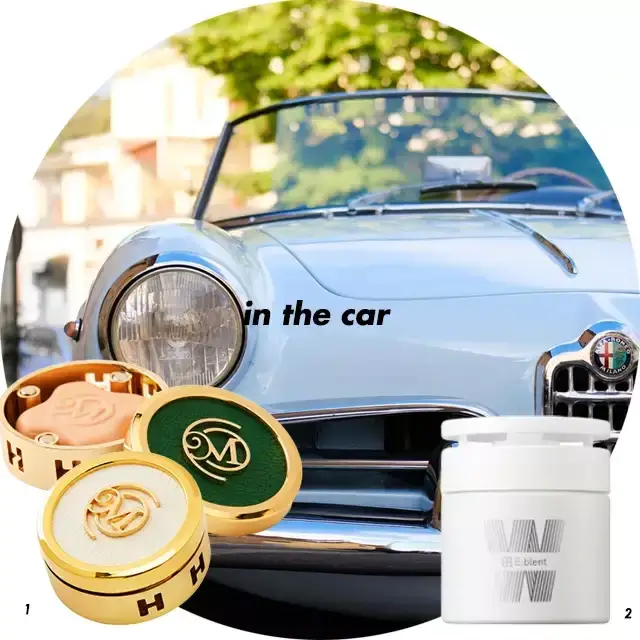 차 내부처럼 좁은 공간일수록 향기템이 더욱 필요하다. 환기가 잘 되지 않기 때문에 너무 무거운 향조보다는 가볍게 날아가는 향이 좋다. 차 내의 퀴퀴한 냄새를 잡아주길 원한다면 달콤한 과일 향이나 시더우드 계열이 강하게 나는 디퓨저 타입의 차량용 방향제를 추천. 자연스러운 발향을 원한다면 송풍구에 꽂아서 사용하는 고체나 리퀴드형 방향제를 앞좌석, 뒷좌석에 하나씩 배치하는 것도 방법이다.