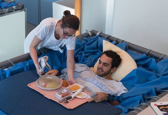 ESA는 5일 공식 홈페이지를 통해 지난달 실시된 일명 ‘워터 베드(Water Bed)’ 실험의 진행 경과를 공개했다. 물침대를 활용한 이 실험은 우주비행이 사람 몸에 주는 영향을 시뮬레이션하기 위해 마련됐으며 정식 명칭은 건식 침지 연구(dry immersion study)다.