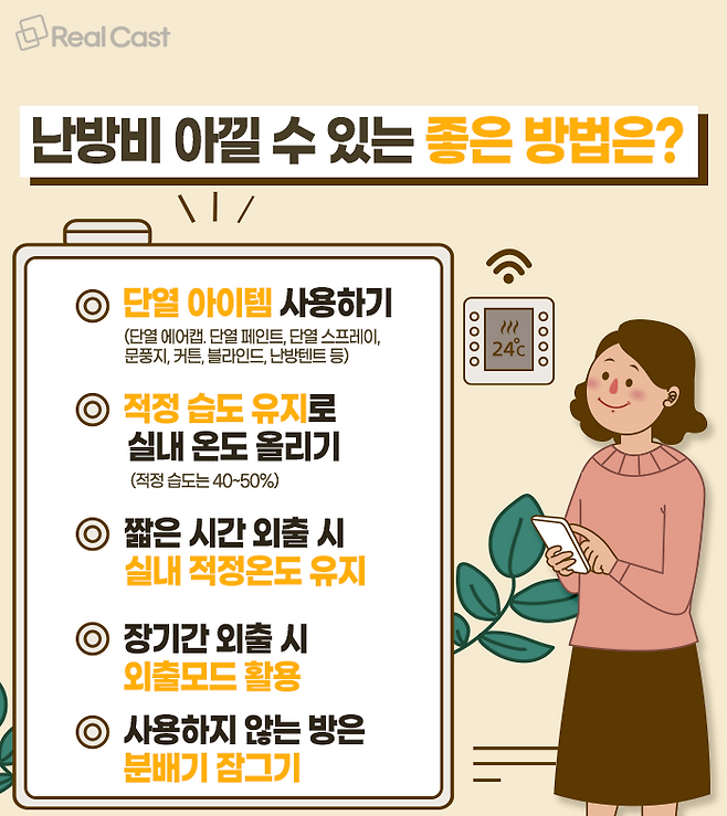 올해 난방과 온수 요금이 지난 2020년 대비 38%나 치솟아 서민들의 시름이 깊어지고 있습니다. 특히 겨울이 얼마 남지 않은 시점이라 관리비 걱정하는 이들이 많은데요. 이에 리얼캐스트TV에서는 난방 및 온수 요금을 아낄 수 있는 방법들을 정리해봤습니다.