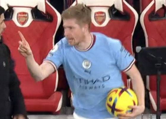 이에 분노하며 더 브라위너가 아르테타 감독을 밀쳤다.