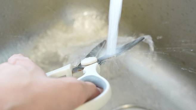양쪽 날을 골고루 갈아주면 가위가 날카롭게 변합니다! 갈고 난 후에는 반드시 깨끗하게 씻어주세요. 미세한 가루가 남아 있을 수 있어요.