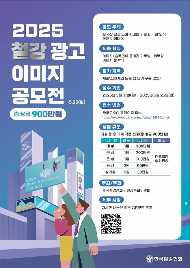 한국철강협회 철강홍보위원회(위원장 장영식 상무/현대제철 커뮤니케이션실장)가 ‘2025 철강 광고 이미지 공모전’을 연다. 홍보위는 3월 31일부터 오는 5월 25일까지 전 국민을 대상으로 철강 이미지를 긍정적으로 높일 작품을 접수한다.