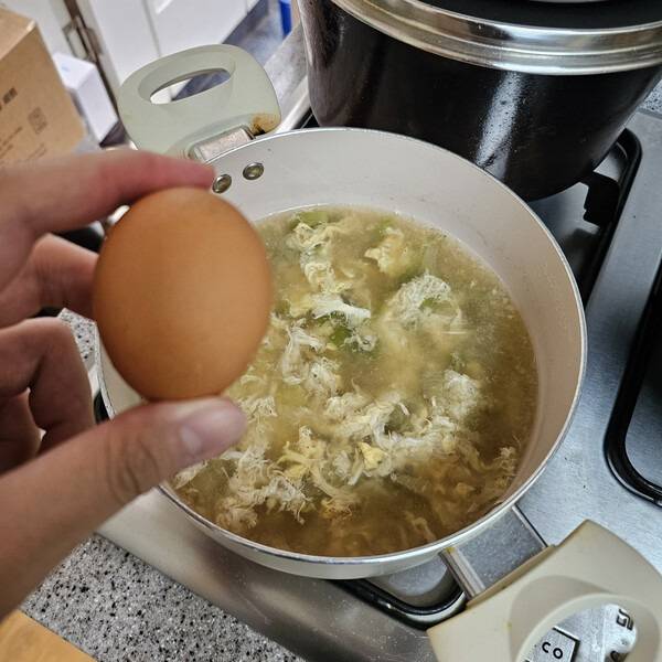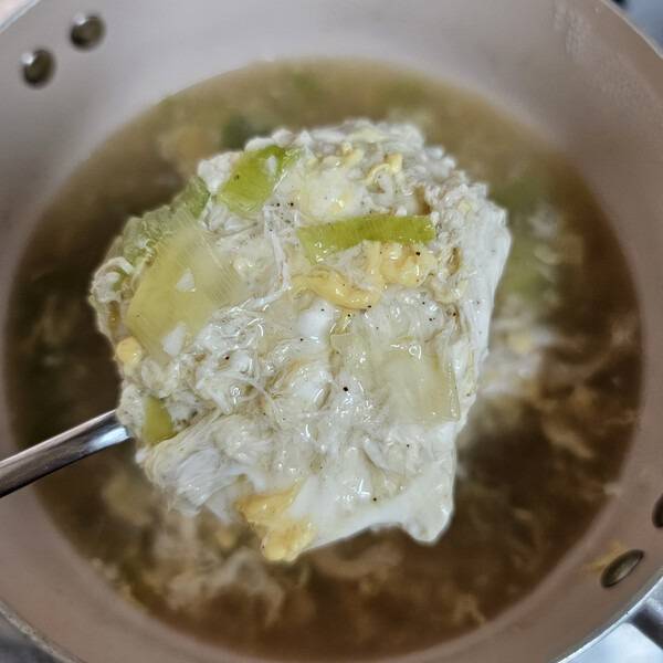 계란은 마지막에 조용히 흘려야 부드럽고 맑은 국물이 됩니다