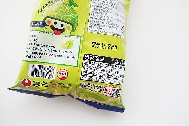 성분표를 보면 콘밀, 설탕, 멜론향 파우더,
