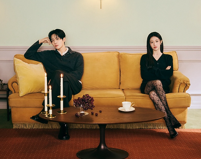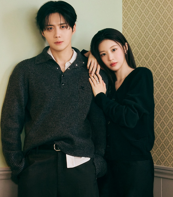 두 사람의 스타일은 아이템 자체를 맞추기보다, 컬러와 무드를 공유하는 방식의 시밀러 커플룩에 가깝습니다. 김선호 님의 클래식한 그레이 톤과 고윤정 님의 올 블랙 스타일이 자연스럽게 이어지며, 화보 전체에 차분하고 성숙한 분위기를 형성합니다.