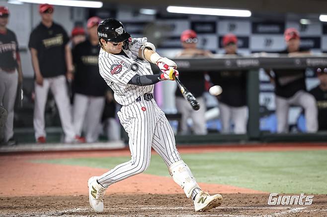 한태양은 고승민이 오른쪽 옆구리 부상으로 이탈했던 7월 초부터 선발 2루수로 나섰다. 지난주엔 데뷔 뒤 처음으로 소속팀이 치른 6경기에 모두 선발 출전했다. 키움과의 주중 3연전(22~24일)에서 각각 1안타씩 쳤고, 25일 KIA 3연전 1차전에서는 개인 한 경기 최다 안타(3개)와 타점(3개)을 경신하며 7-4 승리를 이끌었다. 26일 KIA 2차전은 무안타 침묵했지만, KIA전 스윕(3승)이 걸린 27일 3차전에서는 전준우의 뒤에서 지원 사격을 제대로 해내며 다시 팀 승리를 이끈 수훈 선수가 됐다.한태양은 2022 2차 신인 드래프트 6라운드에 지명된 평범한 선수였다. 입단 첫 시즌(2022) 1군에서 38경기에 출전했지만 타율 0.148에 그쳤다. 하지만 상무 야구단에서 군 복무를 마치고 복귀한 올 시즌 내야진 주축 선수들이 부상과 부진으로 연달아 이탈한 상황에서 존재감을 발휘했다. 타석 기회가 꾸준하지 않은 상황에서도 3할대 타율을 유지했고, 선발로 나선 경기에서 꾸준히 장타를 생산하며 비범한 타격감을 보여줬다. 27일까지 기록한 타율은 0.317, 장타율 0.442, 출루율 0.377다. 2루타 11개 이상 기록한 타자 중 가장 적은 타석(116)을 기록했다.