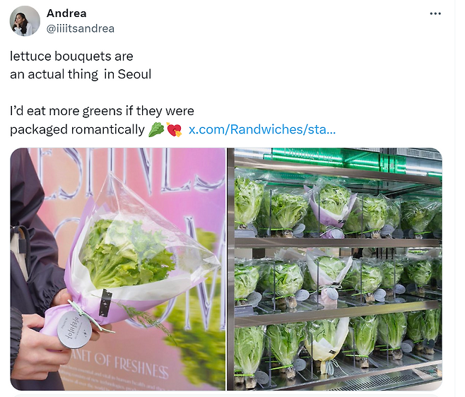 美 칼럼리스트 "한국에서는 꽃 다발 대신 상추 다발을 선물하거나 스스로에게 주는 문화가 서서히 자리 잡아가고 있다"..레알?