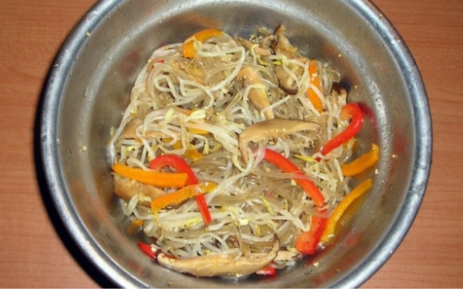 잡채의 당면은 단맛이 나는 양념과 함께 먹으면 혈당을 급격하게 올리는데, 숙주는 이런 흡수 속도를 늦춰 식후 혈당 변동 폭을 줄여줍니다.
