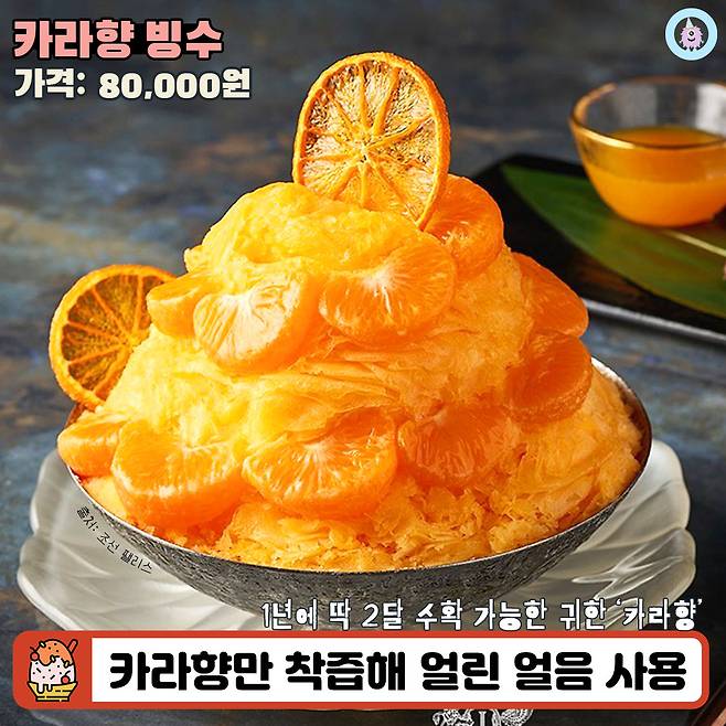 다음은 카라향 덕후인 먹깨비가 찐으로 앓는 소리를 내며 찾아봤던 '조선 팰리스'의 <카라향 빙수>입니다ㅋ.ㅋ 가격은 8만원이고 조선 팰리스 호텔의 '1914 라운지바'에서 맛볼 수 있어요.