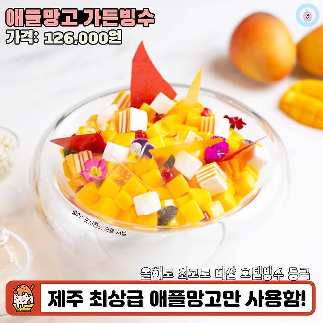 다음은 역시 '포시즌스 호텔 서울' 마루에서 판매되고 있는 <애플망고 가든 빙수>에요. 한 그릇에 무려 12만6천원으로 지난해에 이어 올해도 최고로 비싼 호텔빙수에 등극했어요.