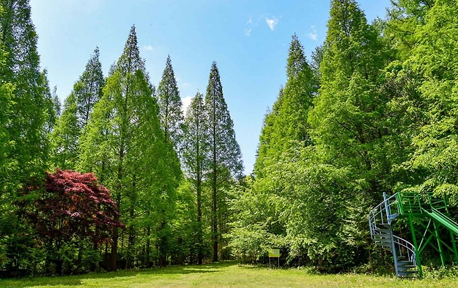 하늘 높이 솟은 메타세쿼이아 나무 사이로 걷는 숲길은 그야말로 영화 속 한 장면. 계절에 따라 풍경이 바뀌는 산책길은 봄·여름의 푸르름, 가을의 단풍, 겨울 설경까지 모두 장관입니다. 잔잔한 호수가 어우러져 감성 사진 명소로도 인기예요.