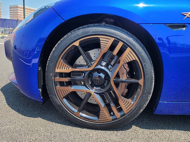 전륜 265(폭)/35(편평비)/20(휠 인치), 후륜 295/30/21인 휠과 타이어도 한몫했다.