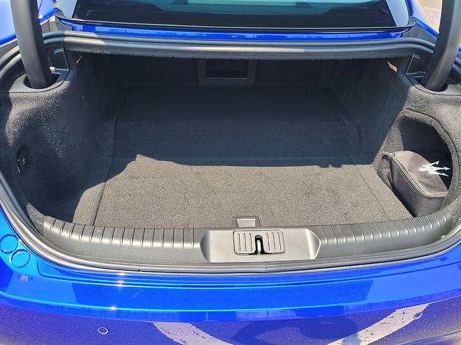 뒤 트렁크 적재공간은 내연기관 모델(310L)보다 줄어든 270L로 작은 편이다. 여행 가방 몇개 정도는 실을 수 있다.