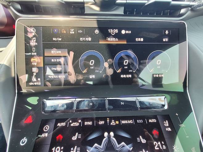 부족한 점도 눈에 띄었다. 스티어링 휠의 다양한 버튼들은 럭셔리카답지 않았다. 고급스럽지 않고 시인성도 떨어졌다. 특히 주행 중 햇빛이 반사되면 잘 보이지 않아서 조작하는 데 불편했다. 2개의 중앙 터치 스크린 사이에 있는 변속 모드 버튼도 고급스럽지 않고 시인성이 떨어졌다.