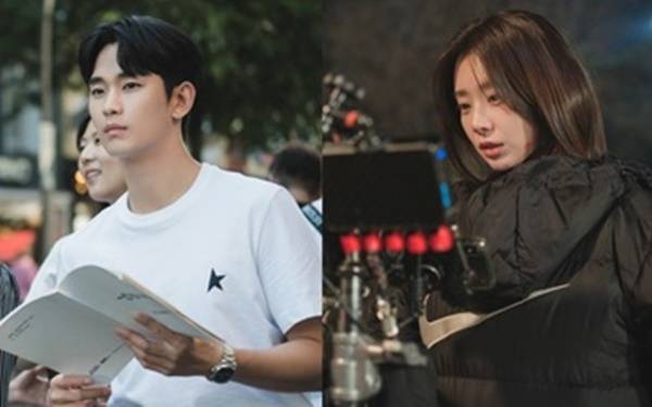 선글라스를 쓴 김수현(백현우 역)의 카리스마와 손하트를 날리는 김지원(홍해인 역)의 러블리함도 돋보이네요.