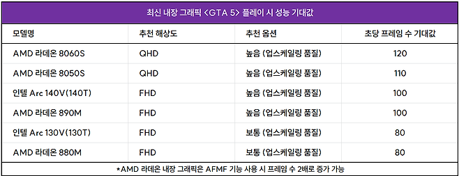 고성능 내장 그래픽인 라데온 8060S, 8050S는 최근 새로 공개된 GTA V Enhanced 버전도 원활하게 플레이할 수 있다.